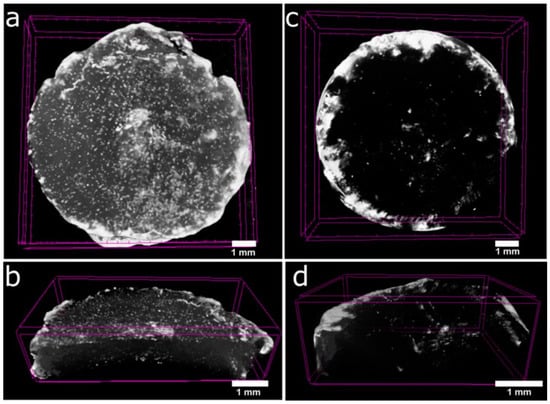 3D constructed µCT tomograms of GelMA_5% (a,b) and GelMA_10% (c,d) scaffolds from day 28 of in vitro culture with MSCs [29]. (Reproduced with permission from Celikkin N et al. Journal of Biomedical Materials Research; published by John Wiley and Sons, 2017).