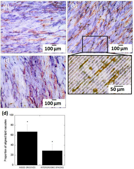 - Kim, M.S.; Kim, A.Y.; Jang, K.J.; Kim, J.H.; Kim, J.B.; Suh, K.Y. Effect of nanogroove geometry on adipogenic differentiation. Nanotechnology 2011, 22, 494017. [Google Scholar] [CrossRef]
