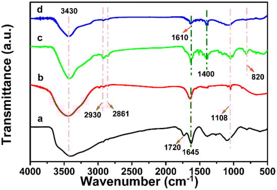 Figure 1b), the peak of the O-H stretching vibrations was suppressed, whilst the hydrogen bond interactions at 1108 cm