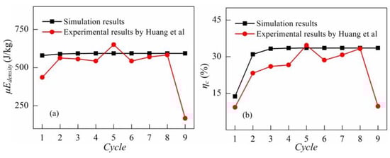 Energy conversion of the DEG for the first nine cycles. (a) The energy density and (b) the conversion efficiency.