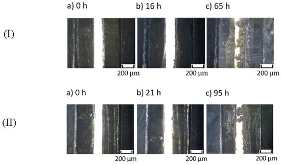 A transparent cell was combined with an optical microscope to monitor the formation and evolution of the lithium dendrites on the lithium/polymer electrolyte interface. The cell configuration is shown in Figure S1, where two narrow lithium metal strips attached to the aluminum conductor were placed on opposite areas of the composite polymer electrolyte membrane, the latter with a thickness of around ~200 µm [37]. All these assembled cell components were then put between two glass plates with a thickness of 1 mm, and further covered by PEEK to keep any gas atmosphere away from the lithium. All measurements were carried out in a dry room.