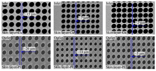 Figure 8B, respectively. For the through-holes dimensions, the inlet and outlet diameters were less than 30 or 10 μm for
