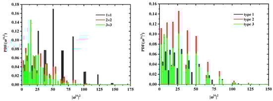N and tube cross section, the most confined SAWs (type 1 in this case) show non-vanishing probabilities for values of