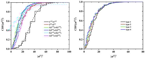 for SAWs restricted on confining tubes of specific sizes for all possible different origins, both on the cubic P (left panel) and F (right panel) lattices.