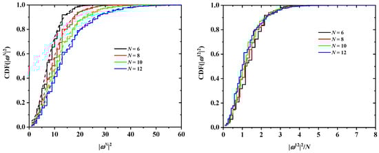 N, where now the number of distinct SAW configurations for a given origin type is divided by the corresponding overlap of that type. The comparison of the left panel of