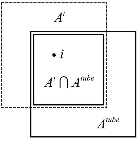 is the area common to a tube cross section (a square in the present work) centered at the SAW origin of type
