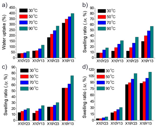Swelling ratio (%) = (Swet − Sdry)/Sdry × 100%,