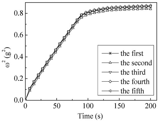 As an example, five experimental curves of the ultra-low ash coal sample wetting by n-hexane are shown in Figure 2. The average slope and standard deviation were 8.23 × 10−3 ± 2.7 × 10−5.