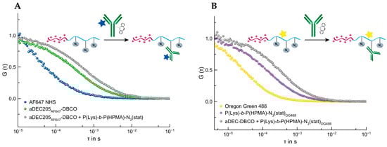 2.6.2. SPAAC of aDEC205(AF647)-DBCO and P(Lys)-b-P(HPMA)(OG488)-N3(stat)