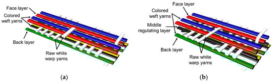Weft-faced, weft-backed structures: (a) structure without regulating layer; (b) structure with regulating layer.
