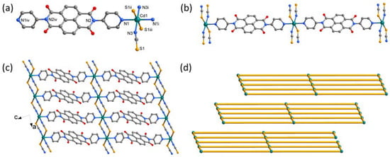 - Feng, X.; Chen, W.; Xiang, B. Solvothermal syntheses, crystal structures, and luminescent properties of two new cadmium(II) coordination polymers based on rigid/flexible dicarboxylate and N,N′-Bis(4-pyridyl)-1,4,5,8-naphthalenetetracarboxydiimide. Z. Anorg. Allg. Chem. 2015, 641, 853–857. [Google Scholar] [CrossRef]