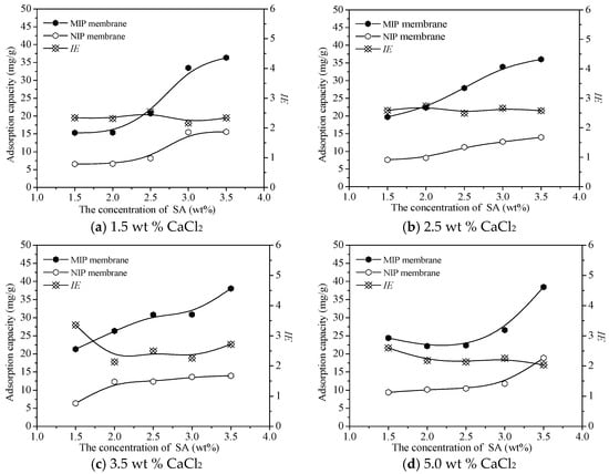 3.2. Adsorption of MIP Membrane Prepared with Different CaCl2 and SA Concentrations