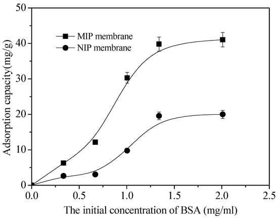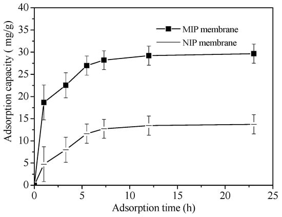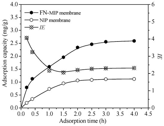 3.3. Adsorption Kinetics of BSA on MIP and NIP Membrane