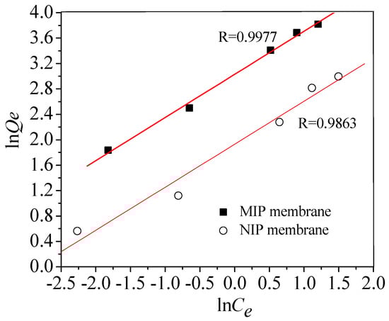 3.4. Adsorption Thermodynamics of BSA on MIP and NIP Membrane