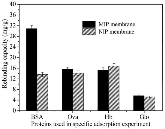 3.5. Specific Adsorption of BSA on MIP and NIP Membrane