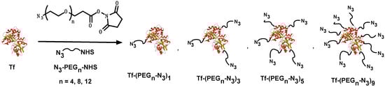 2.2.6. Transferrin Poly(ethylene glycol) (PEG) Linker Conjugation (Tf-PEGn-N3)