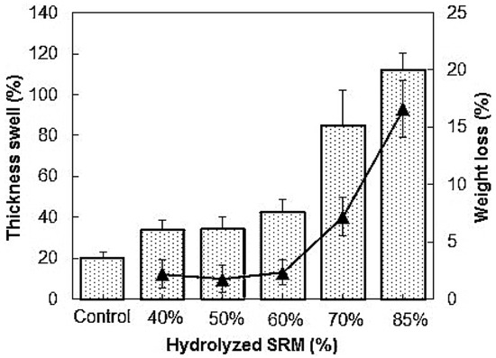 Spent hens are byproducts of the poultry/egg industry and are a potential resource for industrial protein as they contain ~25% crude protein by dry weight [40]. Spent hens are commonly used to produce mechanically deboned meat (MDM), which comprises nearly 20% of the live weight of the bird. The remainder is processed through renderers to produce animal feed additives [86]. Wang and Wu (2012) used spent hen protein to develop wood adhesives after chemically treating the recovered protein with protein denaturing agents—urea and sodium dodecyl sulfate (SDS) [40]. To determine the concentrations of these denaturing agents that were best suited for adhesive preparation, the investigators varied the concentration of urea from 1 to 8 M and the amount of SDS from 0.5% to 5% of protein weight, and evaluated the adhesive strength of resulting formulations (Figure 3).