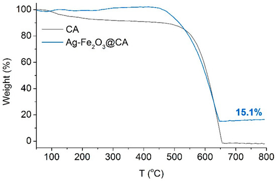 Thermal gravimetric curve of CA and Ag–Fe2O3@CA.