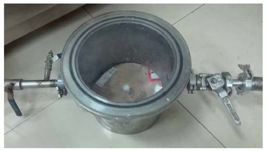 An aging test of the silicone is carried out in this study; some groups’ samples are put into the vacuum-drying (TAISITE Instrument, Tianjin, China) oven shown in Figure 2 to exclude the influence of moisture and to obtain a purer composite. The temperature of the oven is set at 85 °C, and the aging times are controlled at 3, 6, 12 and 24 h for comparison.
