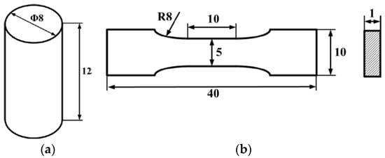 Dimension of the samples for experiment: (a) samples for compression test; (b) samples for tensile test.