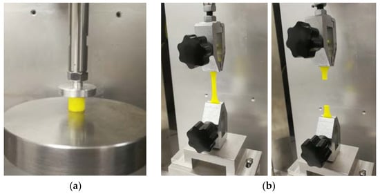 The samples used for the compression test are shown in Figure 3a. The diameter of the cylindrical specimens is 8 mm, and the height is controlled at 12 mm. Because the height of silicone depends on the operation while filling the mould, all the samples are measured before test to guarantee the accuracy of strain calculation.