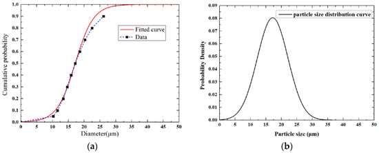 Raw data shown in Table 2 and fitted curve: (a) Cumulative density curve; (b) Probability density distribution curve.