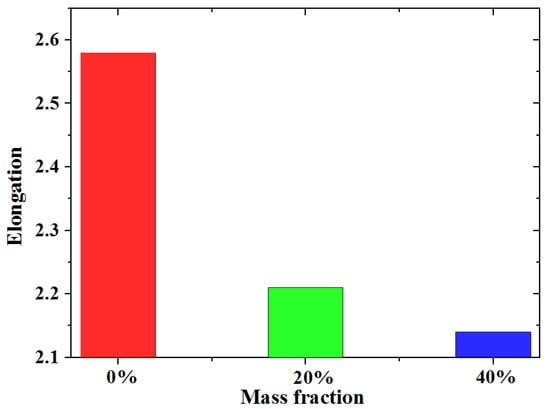 Elongation of the silicone with different mass fractions by experimental results (aging time 0 h, strain rate 1.8 × 10−3/s).