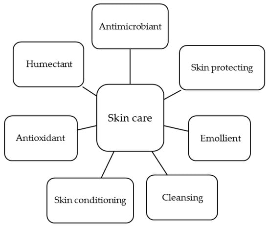 Cleansing products are those to help to maintain the body surface clean. Chitosan argininamide is the only chitosan derivative identified as skin cleansing according to CosIng database. Skin conditioning products are those which function is to maintain the skin in good conditions. A large number of chitosan derivatives and some chitin derivatives have been classified as ingredients with skin conditioning function (Table 9). Emollients function is to soften and smooths the skin. Some chitosan derivatives present this function whereas no chitin derivative has been described as emollient.