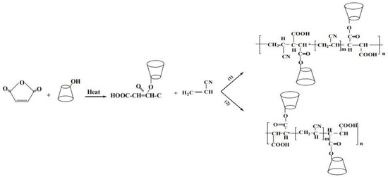 Scheme for the preparation of the β-CD-g-(MAH-co-AN) copolymer.