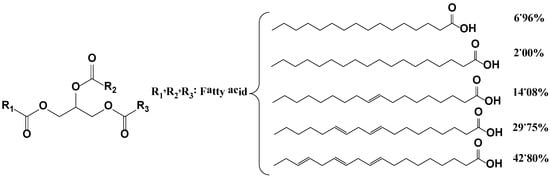 The structure of Sapium sebiferum oil and its fatty acid content.