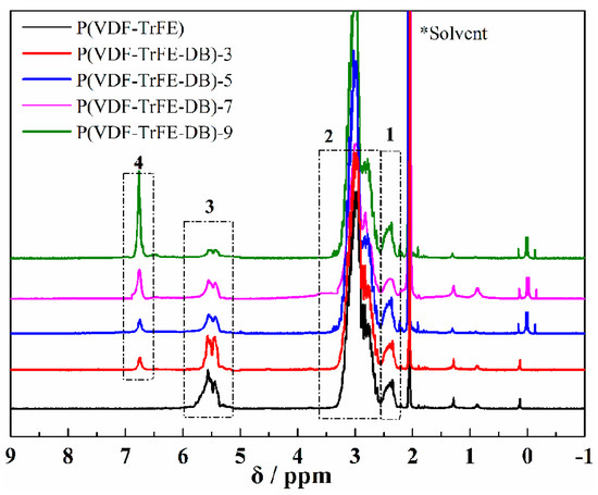 3.1. Characterization and Chemical Composition of P(VDF-TrFE-DB)s