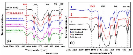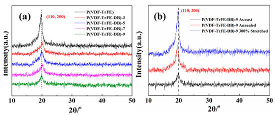 3.2. Crystalline Properties of P(VDF-TrFE-DB) Films Fabricated under Varied Conditions