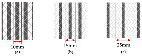 The specimen width of interlayer hybrid composites was set to 12 mm following ASTM D6641; the width of compression specimens was established at the width of a single cell of the hybrid structures. Carbon fiber and glass fiber should be symmetrically distributed to reduce the impact of asymmetric structures. Sample cutting diagrams are presented in Figure 2.