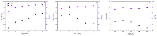 (a) Effects of NaOH concentration on membrane performance of PAUt membranes; Effects of CS concentration on membrane performance of (b) PAUt-CS and (c) PAUt-PDDA/PSS/CS. Testing conditions: 1.55 MPa and 2000 ppm NaCl as feed solution at 25.0 ± 2.0 °C.