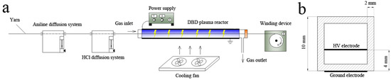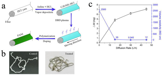 Liu, S.; Liu, D.; Pan, Z. The Effect of Polyaniline (PANI) Coating via Dielectric-Barrier Discharge (DBD) Plasma on Conductivity and Air Drag of Polyethylene Terephthalate (PET) Yarn. Polymers 2018, 10, 351. https://doi.org/10.3390/polym10040351