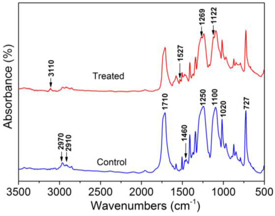 3.3. Chemical Characterization of Treated PET Yarn Surfaces