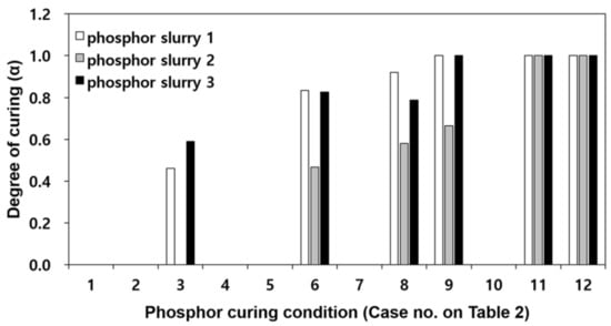 Comparison of the degree of curing of phosphor film per phosphor slurry and curing process conditions.