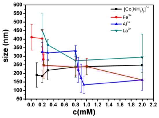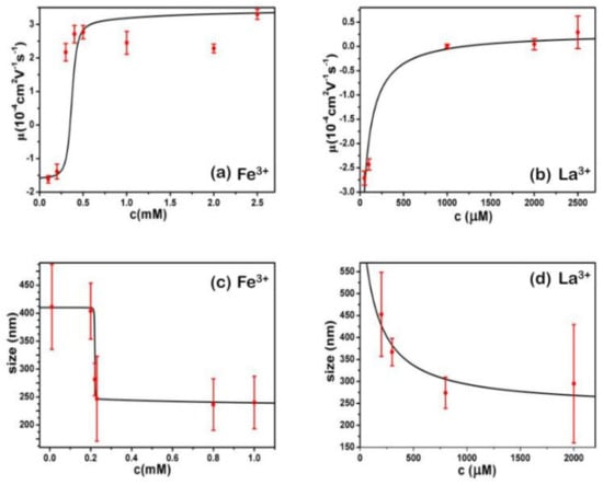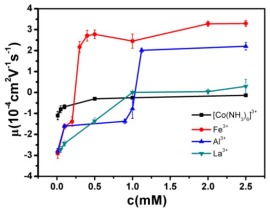 - Wang, W.; Park, R.Y. Ionic specificity in pH regulated charged interfaces, Fe3+ versus La3+. Langmuir 2011, 27, 11917–11924. [Google Scholar] [CrossRef] [PubMed]