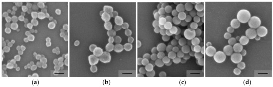 - Choi, J.; Kwak, S.Y.; Kang, S.; Lee, S.S.; Park, M.; Lim, S.; Kim, J.; Choe, C.R.; Hong, S.I. Synthesis of highly crosslinked monodisperse polymer particles: Effect of reaction parameters on the size and size distribution. J. Polym. Sci. Part A Polym. Chem. 2002, 40, 4368–4377. [Google Scholar] [CrossRef]