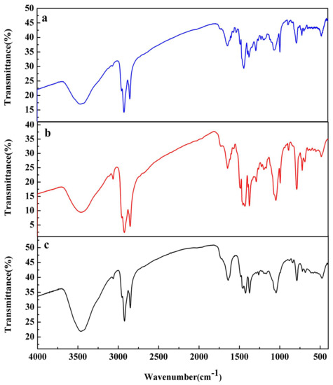 FT-IR spectra of P1 (a); P2 (b); and P3 (c).
