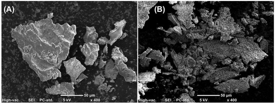 In this study, GSH is the precursor of the NO donor molecule, GSNO [60]. Due to the intrinsic thermal and photochemical instability of GSNO [7,22,40], the characterization of morphological, rheological and thermal properties of the hydrogel was performed with the GSH-PL/CS hydrogel. The morphology of PL/CS and GSH-PL/CS hydrogels was observed by SEM analyses of lyophilized formulations [24,37]. Figure 2A exhibits a representative image of the PL/CS hydrogel. A smooth surface with defined edges and amorphous structures can be observed. Figure 2B exhibits a representative image of the GSH-PL/CS hydrogel. The GSH incorporation into the hydrogel leads to a more irregular surface. It should be noted that dynamic surfaces, as observed in Figure 2B, might increase cell adhesion, migration and detachment, which is desirable for tissue engineering applications [61]. The surface of hydrogel is the initial and primary site of interaction with surrounding cells and tissues. In biomedical applications, including in tissue engineering, hydrogels with roughness surfaces are considered suitable for cell attachment, cell proliferation, tissue growth, passage of nutrients, drug loading and delivery. In this sense, the surface morphology of the hydrogel (presence of pores and roughness) can affect the biomaterial biocompatibility through modifications in cell proliferations and attachment to a solid substrate. As shown in Figure 2, the GSH-PL/CS hydrogel has a roughness surface, while PL/CS hydrogel has a smooth surface. Roughness surface morphology might increase the cell attachment and the cell proliferation, which are desirable for tissue engineering applications [61]. The hydrogels studied here have similar morphologies to those described by Leyva-Gomes et al., who characterized PL and PL/CS hydrogels prepared by gamma irradiation [37].