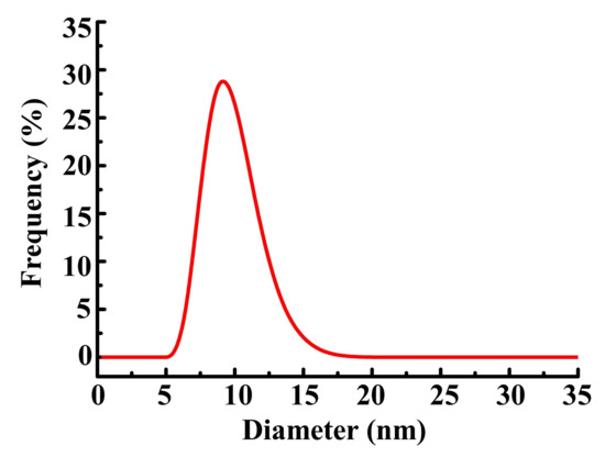 DLS of the polymer 2, showing the diameter of around 9 nm.