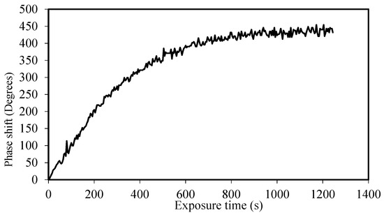 Phase shift as a function of exposure time for a 30-µm thickness material.