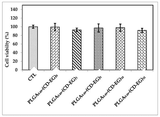 Cell viability of PLGA0.49-(CD-EG)15 at a concentration of 1 (µm/mL) on BV-2 microglial cells.