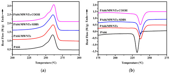 | PA66/MWNTs-SDBS | 260.8 | 93.49 | 236.7 | 47.7 |