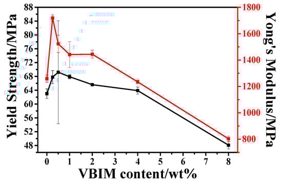 The yield strength and Young’s modulus as functions of the VBIM content.