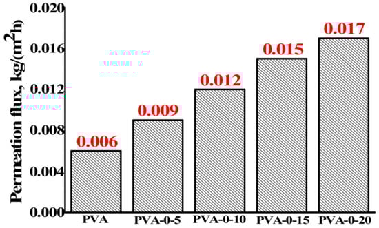 The permeation flux for the dense membranes for the separation of 80 wt % isopropanol–20 wt % water mixture by pervaporation at 22 °C. The accuracy value for permeation flux did not exceed ±2%.