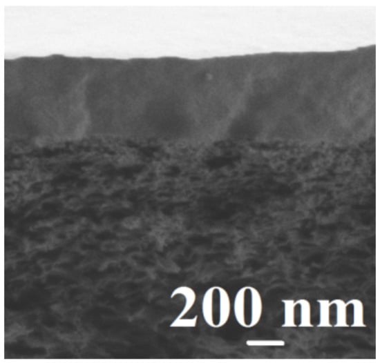 Three areas can be clearly distinguished in the SEM micrographs (Figure 7): (1) the region of the porous support, (2) the selective layer (1 ± 0.3 μm), and (3) the polyelectrolyte layer of PSS and CS (0.4 μm). Notably, the thickness of the layers remained unchanged and continuous throughout the membrane surface after pervaporation.