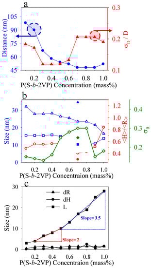 - Kim, T.H.; Huh, J.; Hwang, J.; Kim, H.-C.; Kim, S.H.; Sohn, B.-H.; Park, C. Ordered Arrays of PS-b-P4VP Micelles by Fusion and Fission Process upon Solvent Annealing. Macromolecules 2009, 42, 6688–6697. [Google Scholar] [CrossRef]