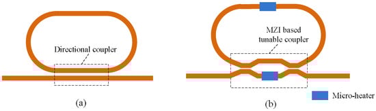 Schematic structures of the microring resonators consisting of (a) a directional coupler and (b) a MZI based tunable coupler.